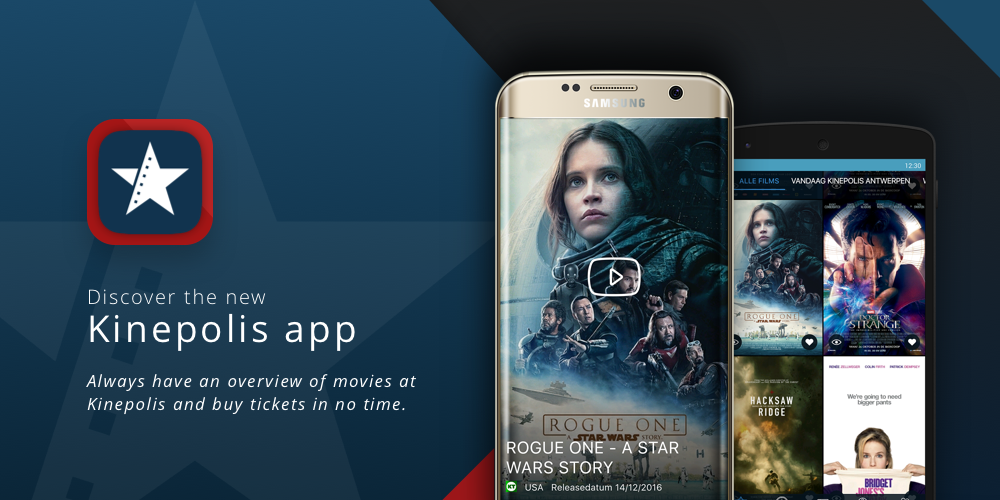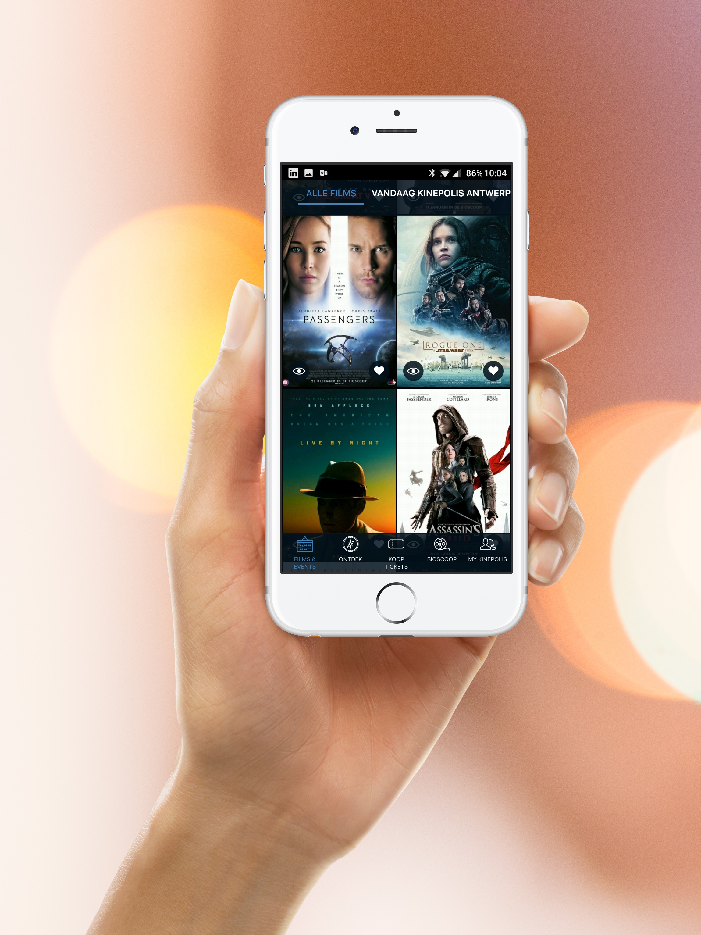 Since the launch of online ticket sales in 2002, the Kinepolis website, and for some years also the mobile Kinepolis app, have been the ideal way of quickly consulting the latest film programme and directly purchasing tickets. The previous generation of the app was downloaded over 1 million times, and with around 220,000 active users per month, it was high time the app was updated.
